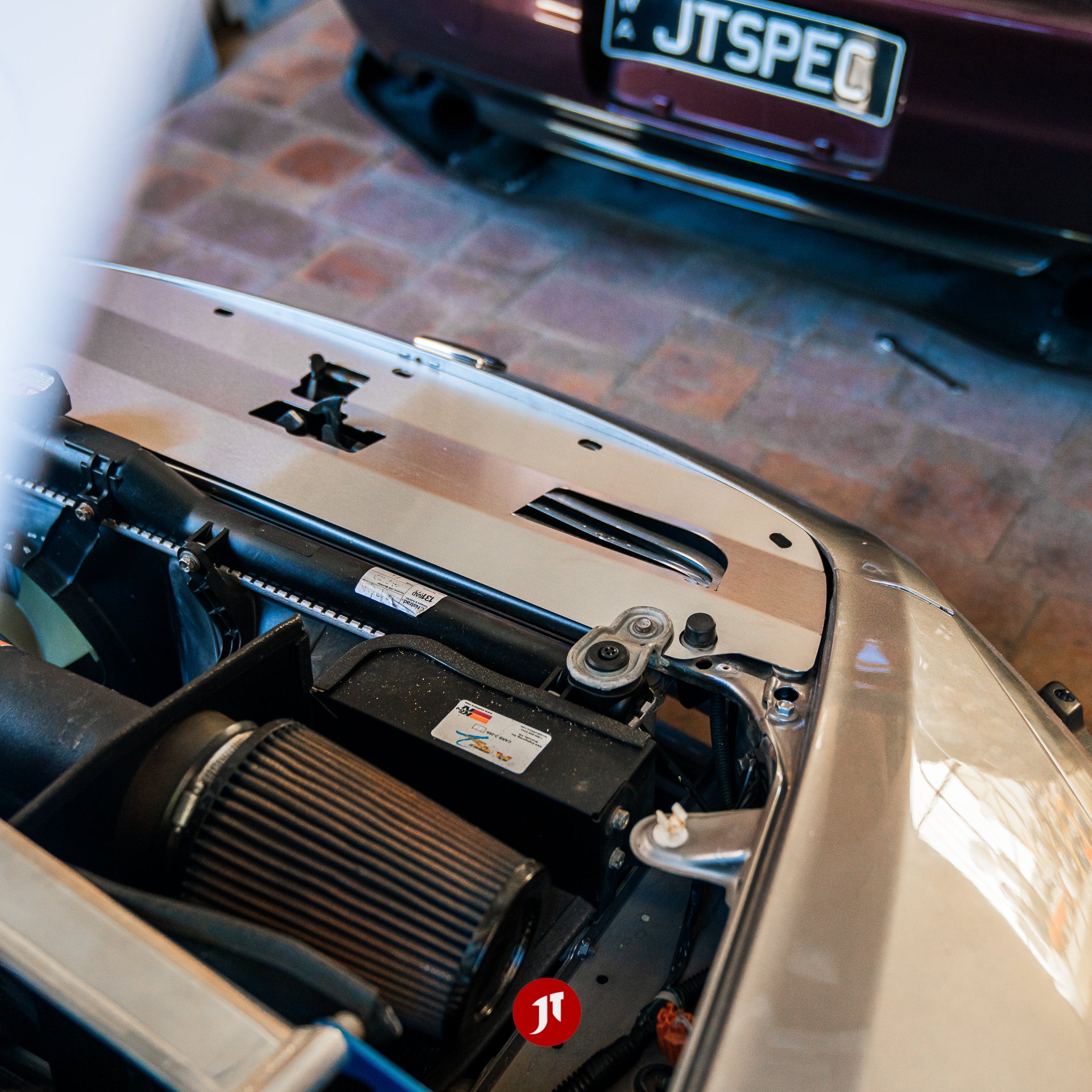 The stainless steel JT SPEC Radiator Cooling Panel is designed to more efficiently direct the air flow for cooling purposes. Hot air from the engine bay stays above the panel, with incoming cooler air flow staying below the panel.