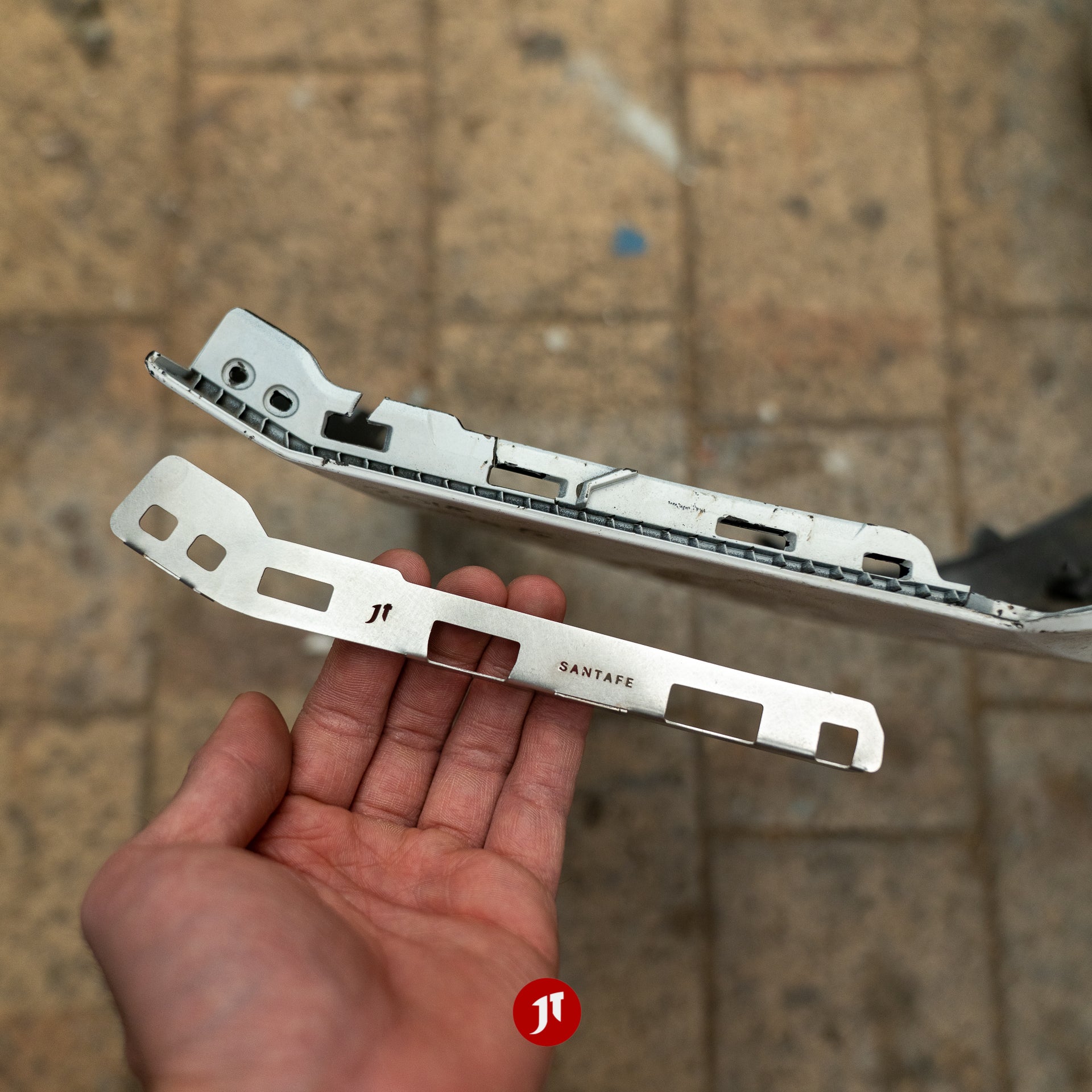 These stainless steel plates are designed to repair damaged side tab attachment holes for the OEM Hyundai Santa Fe Gen 3 (DM/NC; 2012-2020) front bumper.