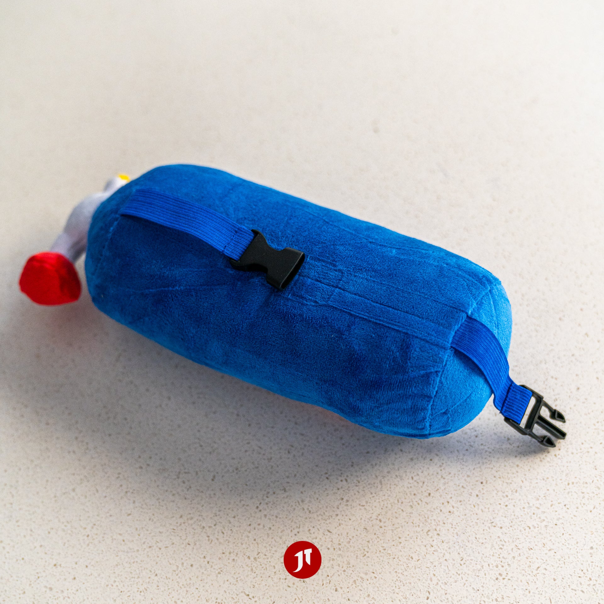 Has a clip on strap to attach to the seat as a head rest.