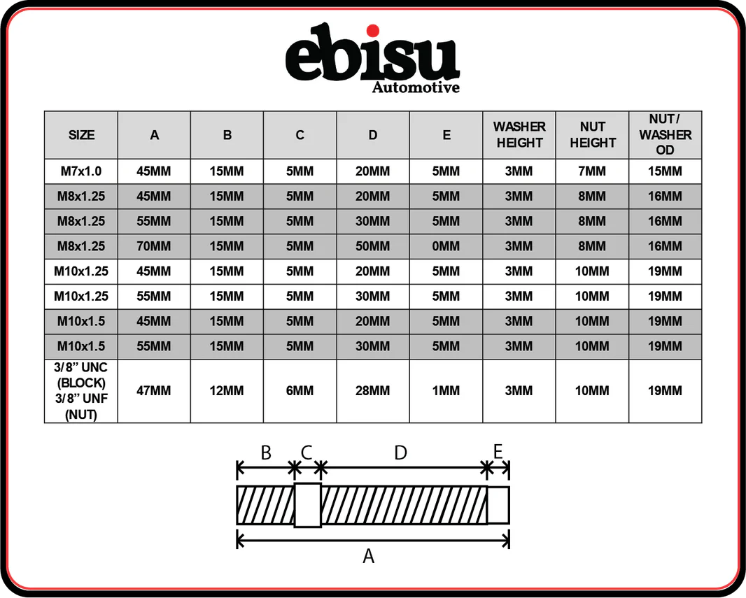 We offer our studs with 2 types of nut, 6 point or 12point, and they are all a specialised locking nut to reduce the likelihood of loosening from vibrations.